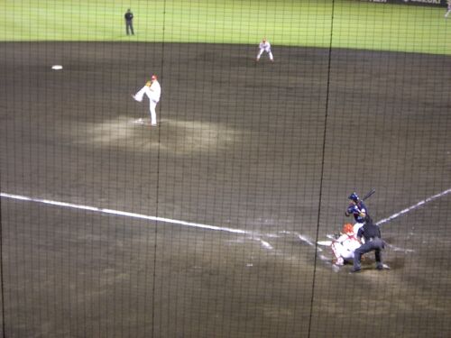 只今の広島市民球場です カープの選手が汗を流しています。