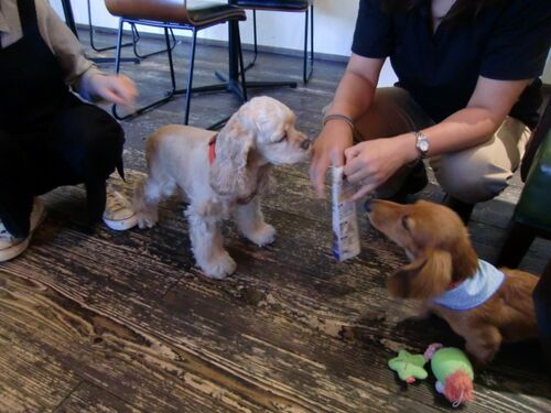 ロックは1回ずつ成長しています ドックカフェに初めて行ったのが8月下旬 どうぶつ病院の先生から散歩に出してもいいとGOサインをもらって 1週間ほど経ってのドックカフェデビューでした あれから合計で7-8回ほど通いました 最初、我々がテーブルについても …