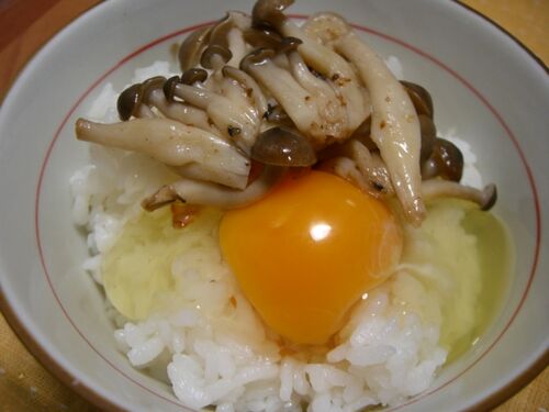 020 ぶなしめじ たまごかけごはん 参考『365日たまごかけごはんの本』掲載なし 最近50-60円で手に入るしめじ 少々炒めてからのせてみました おいしさ GOOD お手軽さ 普通