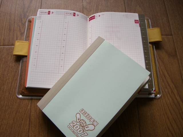 2007-12-21 ほぼ日手帳2008 今日から使い始め 無題 #練習用 今年から使い始めた「ほぼ日手帳」ですが、この手帳は素晴らしかった。 今まで使ったどの手帳よりも、使いやすくて、「楽しかった」 あと残り11日になって、2007年度版から、2008年度版にチェンジしました。 何か新しい手帳を持つと、気持も一新できるような感じです。 来年12月まで、これと楽しく付き合っていきたいと思います。