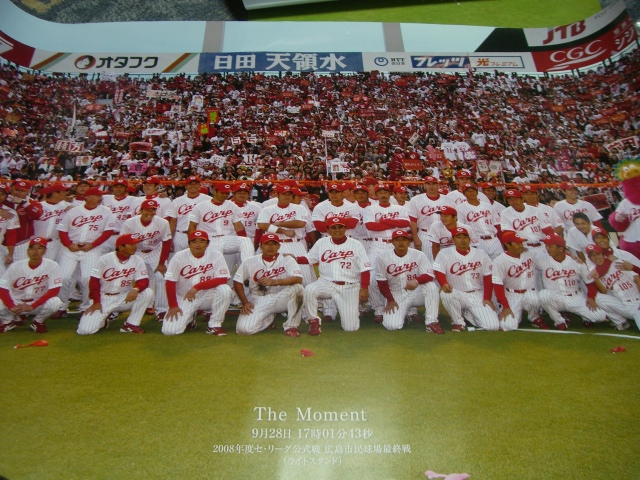2008-11-18 広島カープ ラストイヤー記念ポスター 広島東洋カープ #練習用 10月下旬に購入していたカープグッズ。 やっと届きました。 ラストイヤー記念ポスター 2009年カレンダー ポスターなんて買うのは初めてですが、実はこれ、ライトスタンドをバックに撮った選手の集合写真。 その日ライトスタンドで最後の市民球場を楽しんでいたので、「もしかしたら写っているかも?」で買ったもの。 早速確認したら、きちんと写っていました。 意外にはっきりと写っていました。 嬉しいです。 これは、記念になります。 早速ポスター入れる額を買いに行こうっと。