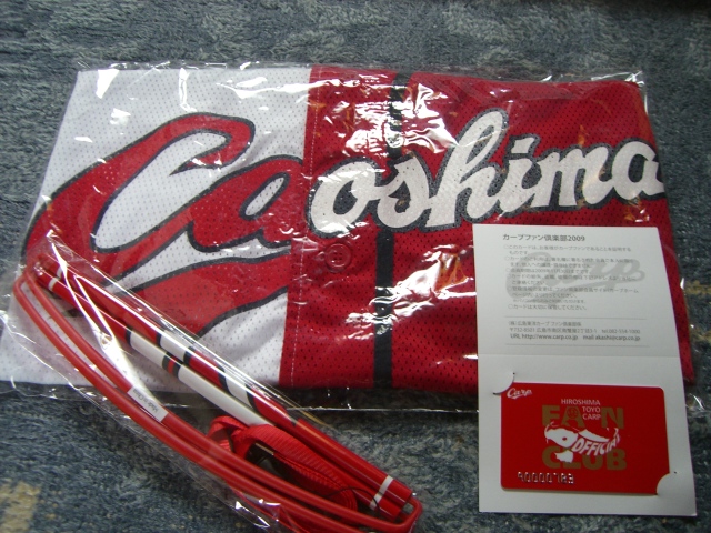 2009-03-22 カープファン倶楽部2009 広島東洋カープ #練習用 グッズ到着!! 今年初めてこのファン倶楽部に入りました。 □ファンの証カード □オリジナルメッシュジャージ □オリジナルロールフラッグ 以上3点入っていました。 ホームとビジターのユニフォームがドッキングしたジャージ。 レアなデザインで気に入っています。 新球場でこれを着ている人をたくさん見れそうです。
