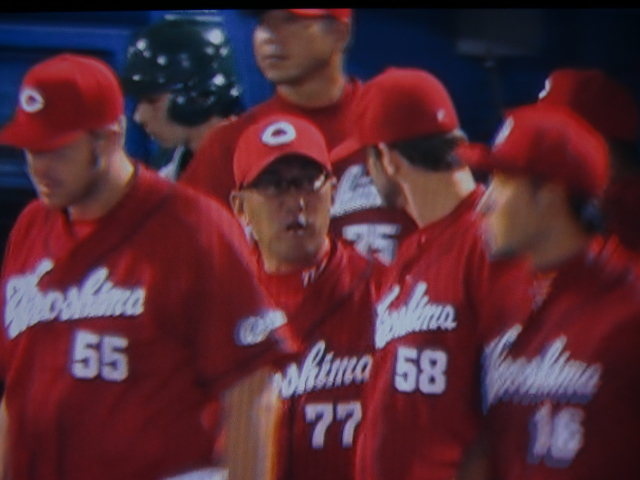 この前にバリントンも野村監督と話しているサファテに何かを話していました